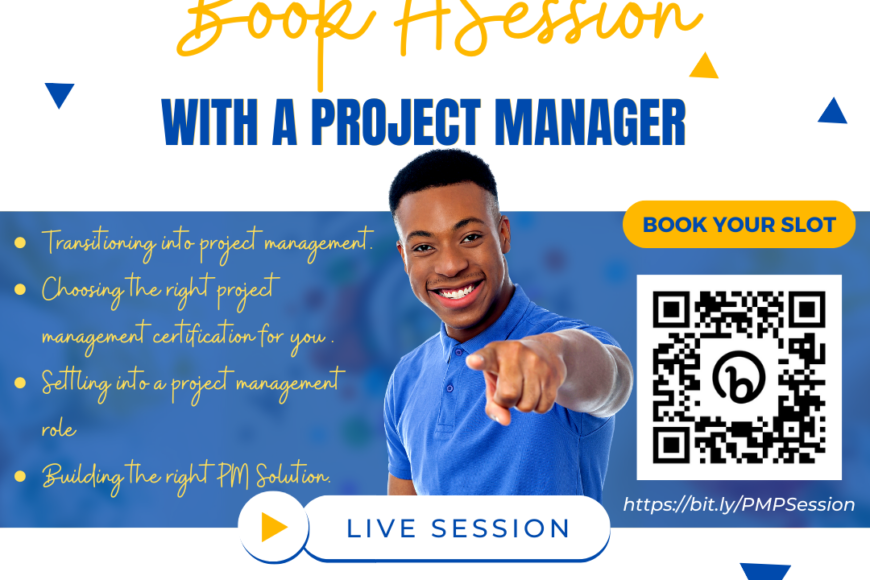 Book a 30 mins to 1hr session with a trained project manager and get clarity to all your questions or concerns. Some of the areas to gain clarity include; 1. Transitioning into project management. 2. Choosing the right project management certification for you . 3. Settling into a project management role 4. Building the right […]